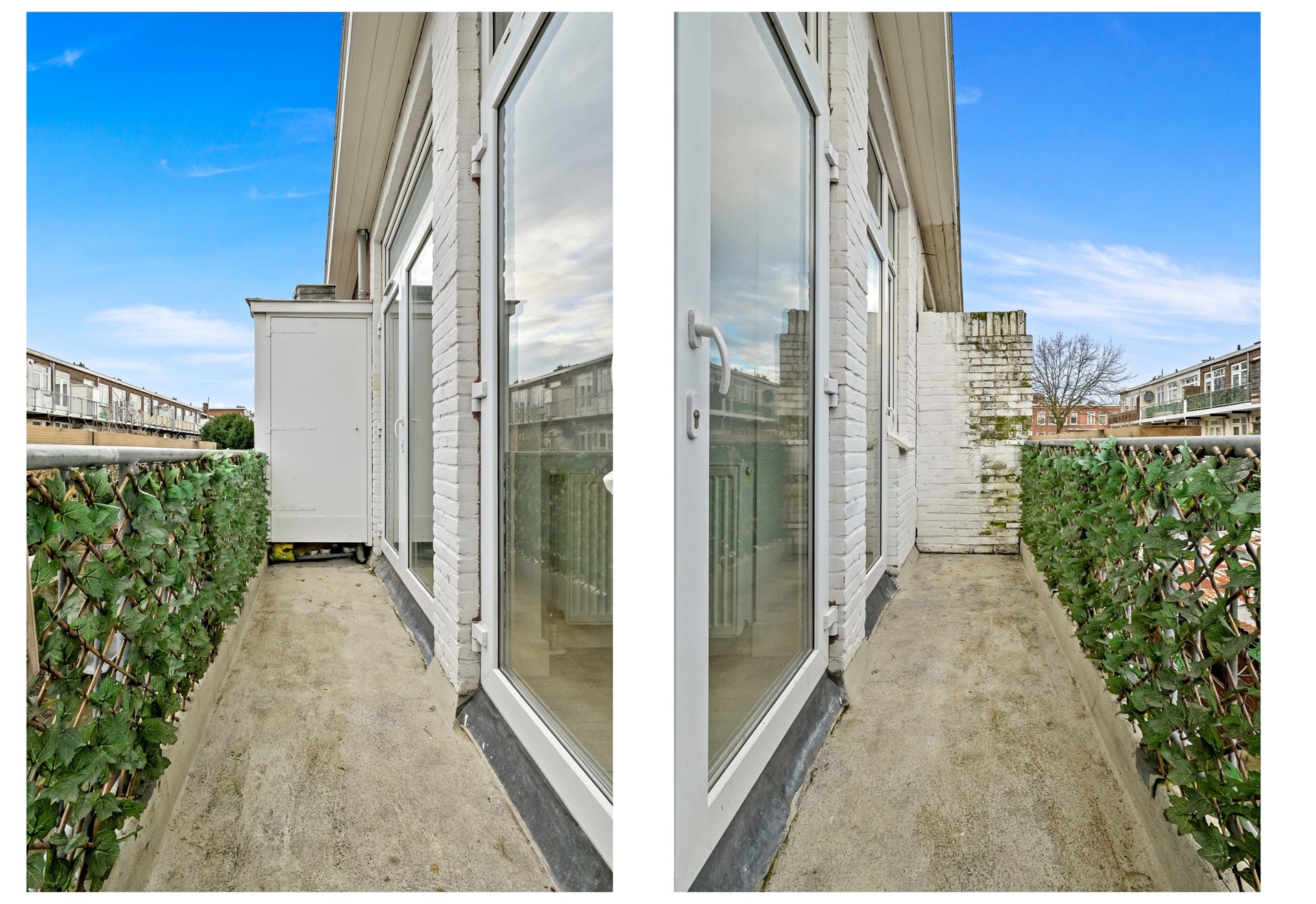 Het balkon bereikt u via de keuken en de eerder genoemde (slaap-/studeer-)kamer. Het balkon is gelegen aan de achterzijde van de woning, welke gelegen is op het Noordoosten (4 m2). Het balkon heeft tevens een balkonkast.