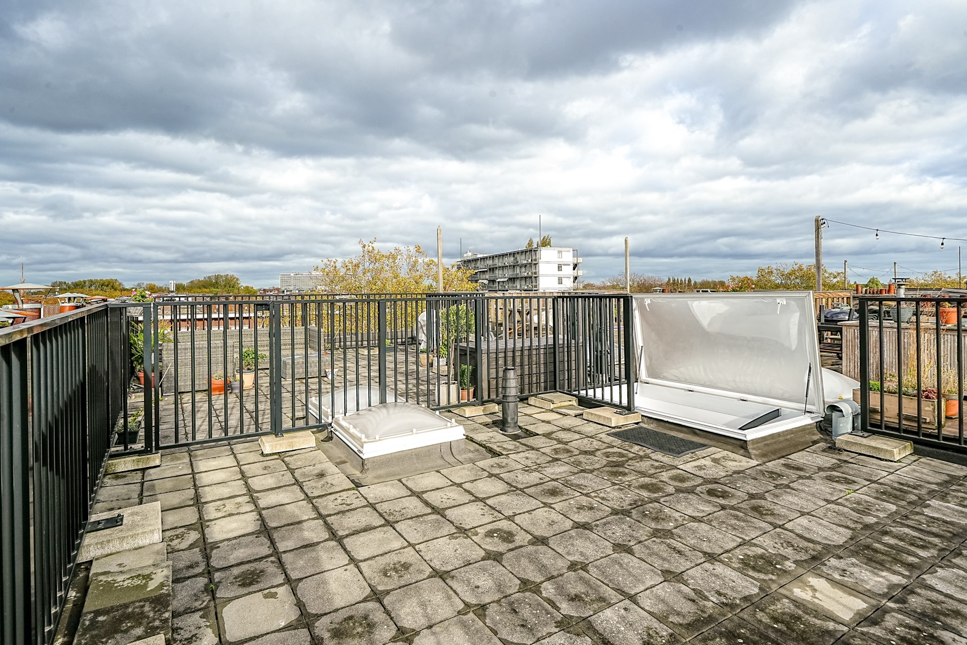 Via de trap komt u op de vierde verdieping waar u twee slaapkamers, een tweede toilet, een bergruimte en een badkamer tot uw beschikking heeft. Verder bevindt zich hier een vaste trap met toegang tot het prachtig aangelegde dakterras. Waar je de hele dag zon hebt. Het terras is afgewerkt met tegels. Dit is een hele fijne en ruime plek waar je buiten kunt genieten met vrienden en familie.