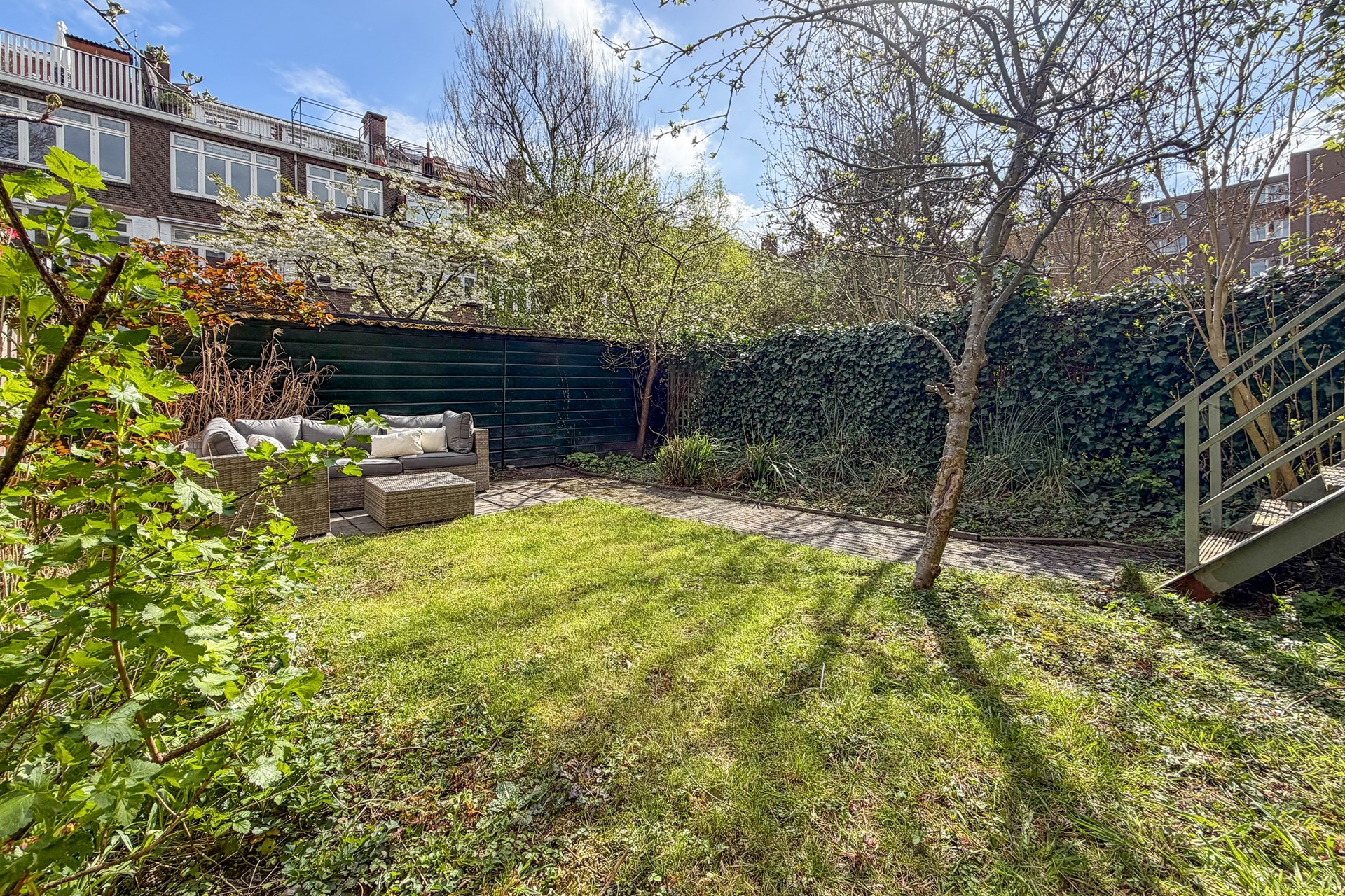 Door de diepte is er veel zon in de tuin. Achter in de tuin is er een praktische houten berging met doorgang naar het pad erachter. De berging heeft ruimte voor fietsen, tuinspullen of kinderspeelgoed.
