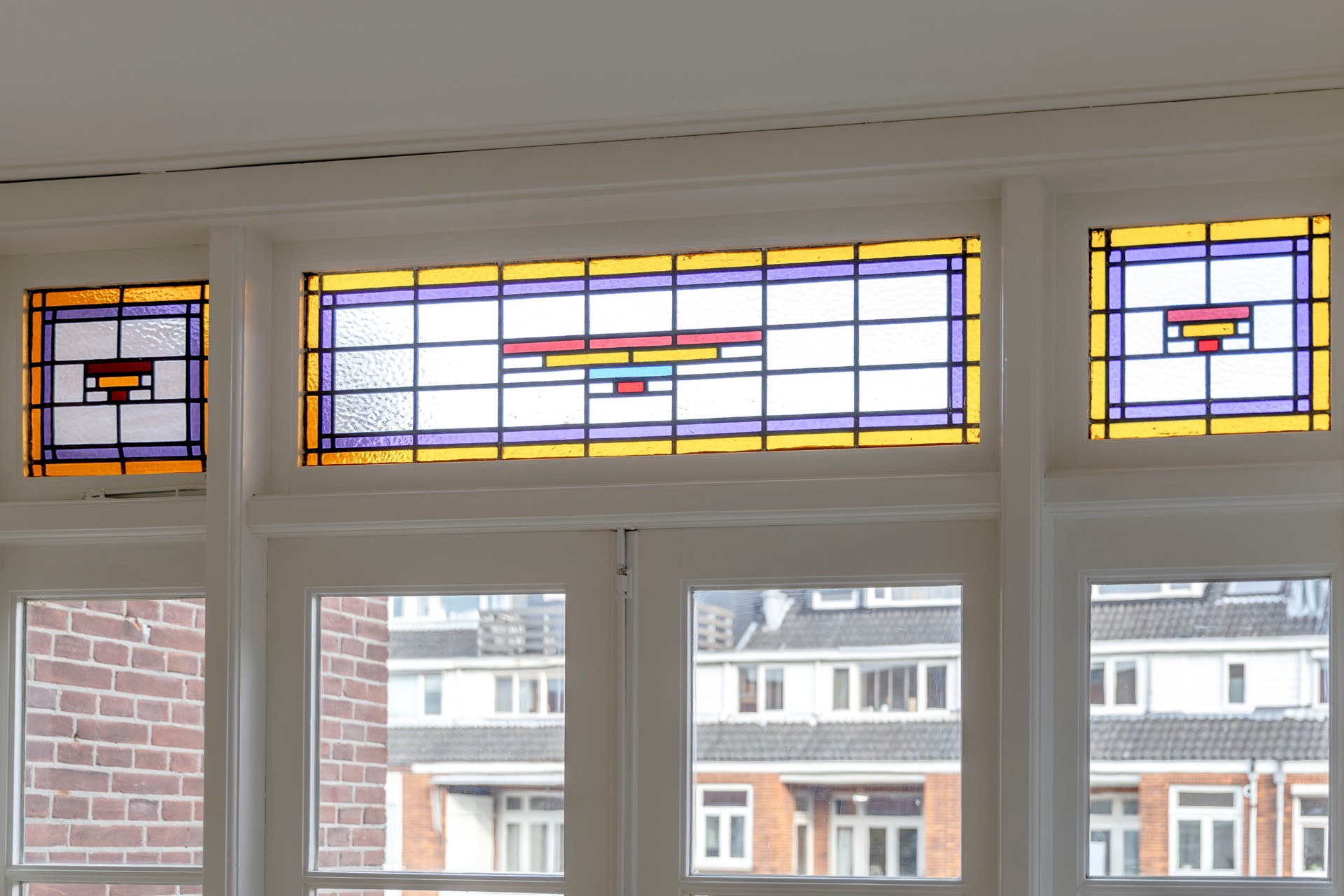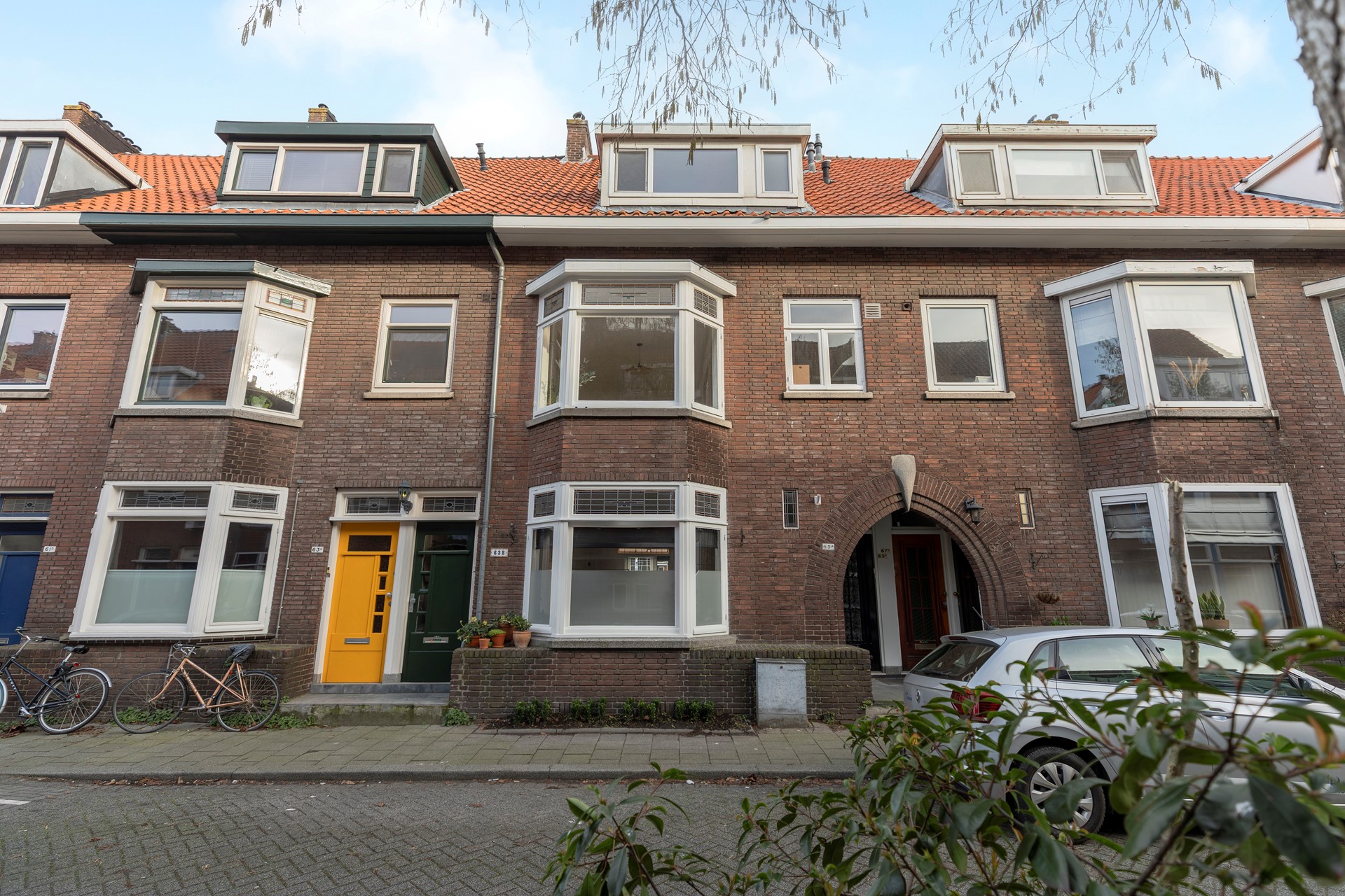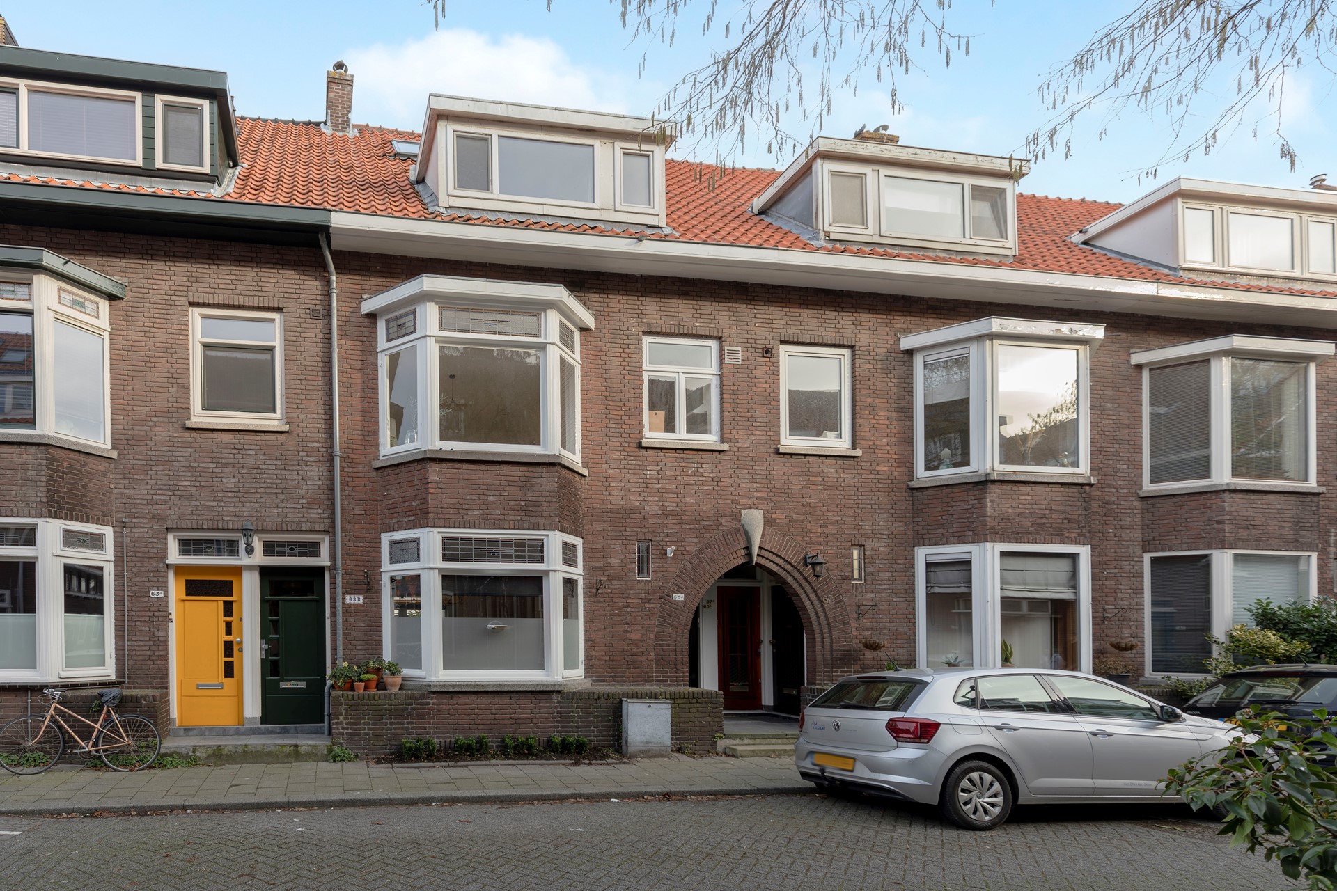Al bij het bekijken van de woning vanaf de straat valt op dat dit een sfeervolle woning is. De nette gevel, de glas-in-loodbovenramen en de toog die naar de voordeur leidt, dragen hieraan bij. Dit is zo’n huis waar je nieuwsgierig van wordt nog vóór je binnen bent.