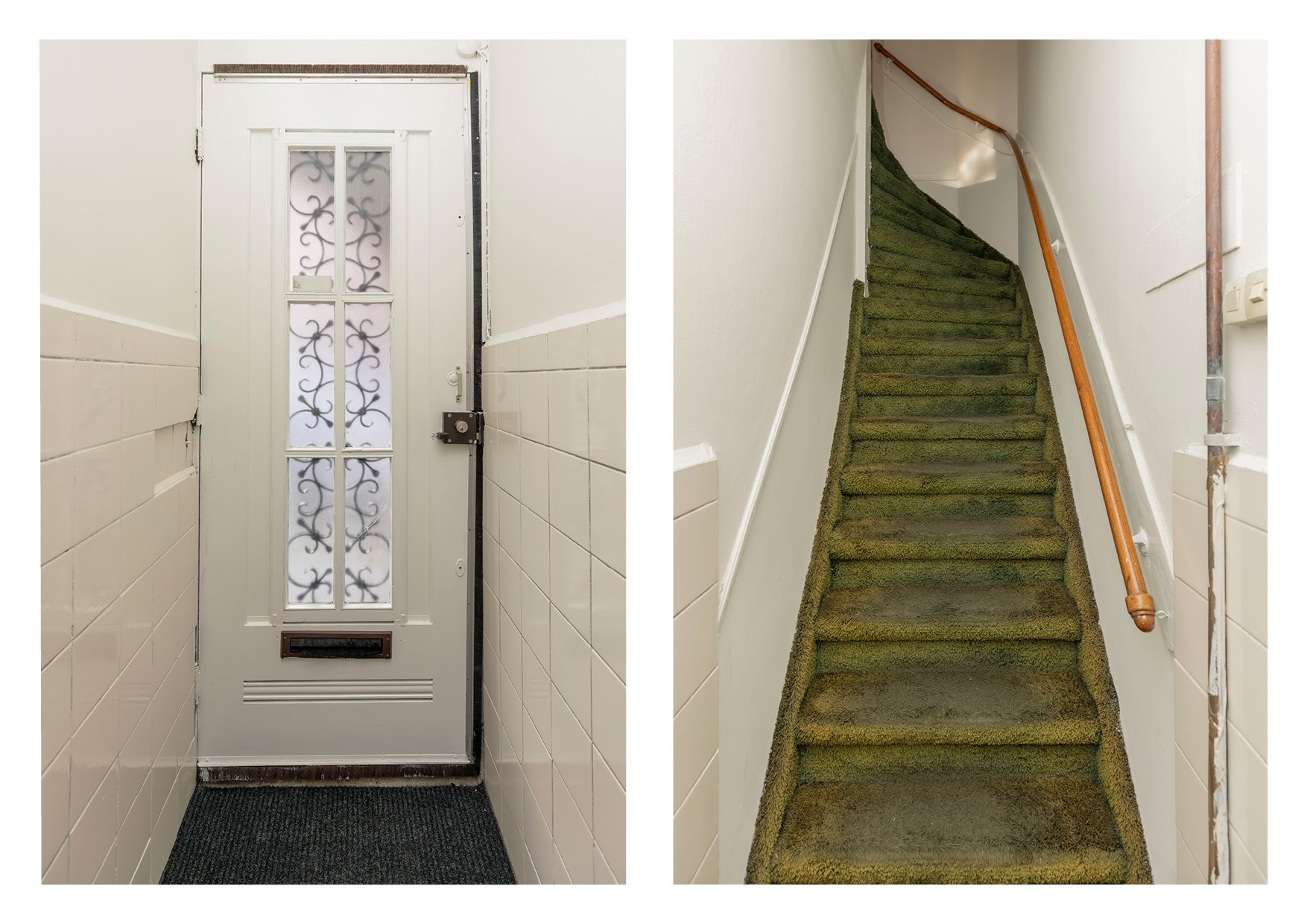 De voordeur biedt toegang tot de trap die u naar de hal op de eerste verdieping brengt.