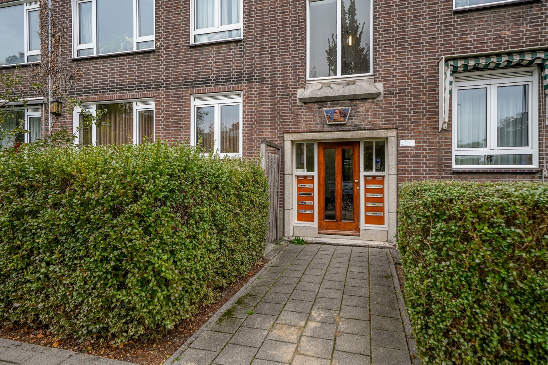 Gesloten portiek. Vanuit hier is er toegang tot de berging. Trapopgang met toegang tot de eigen voordeur.