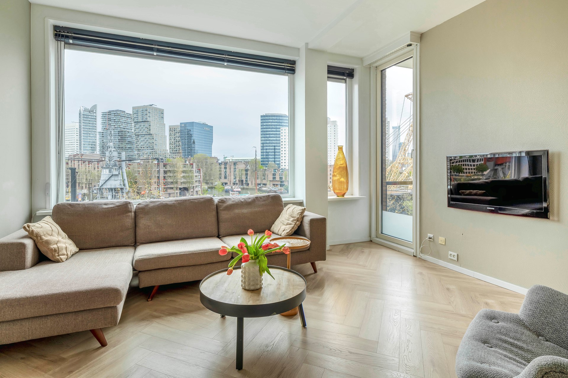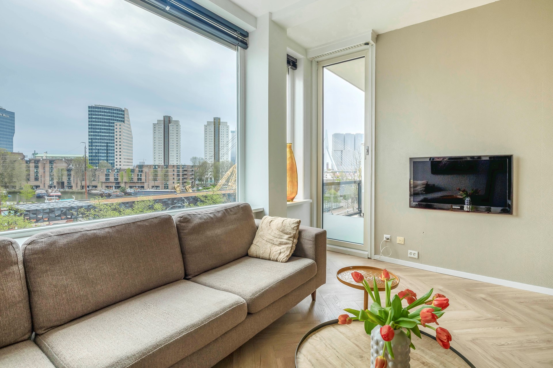 Prachtig gerenoveerd 3-kamerappartement op een toplocatie met spectaculair uitzicht op de Leuvehaven! Dit stijlvolle appartement biedt een unieke woonervaring in het bruisende hart van Rotterdam. De woning beschikt over een royale woonkamer met toegang tot een balkon aan de voorzijde, een moderne keuken, twee ruime slaapkamers en een mooie badkamer.Met een prachtig uitzicht over de Leuvehaven en de voorbijvarende boten en watertaxi's geniet je hier elke dag van het levendige Rotterdamse stadsbeeld!