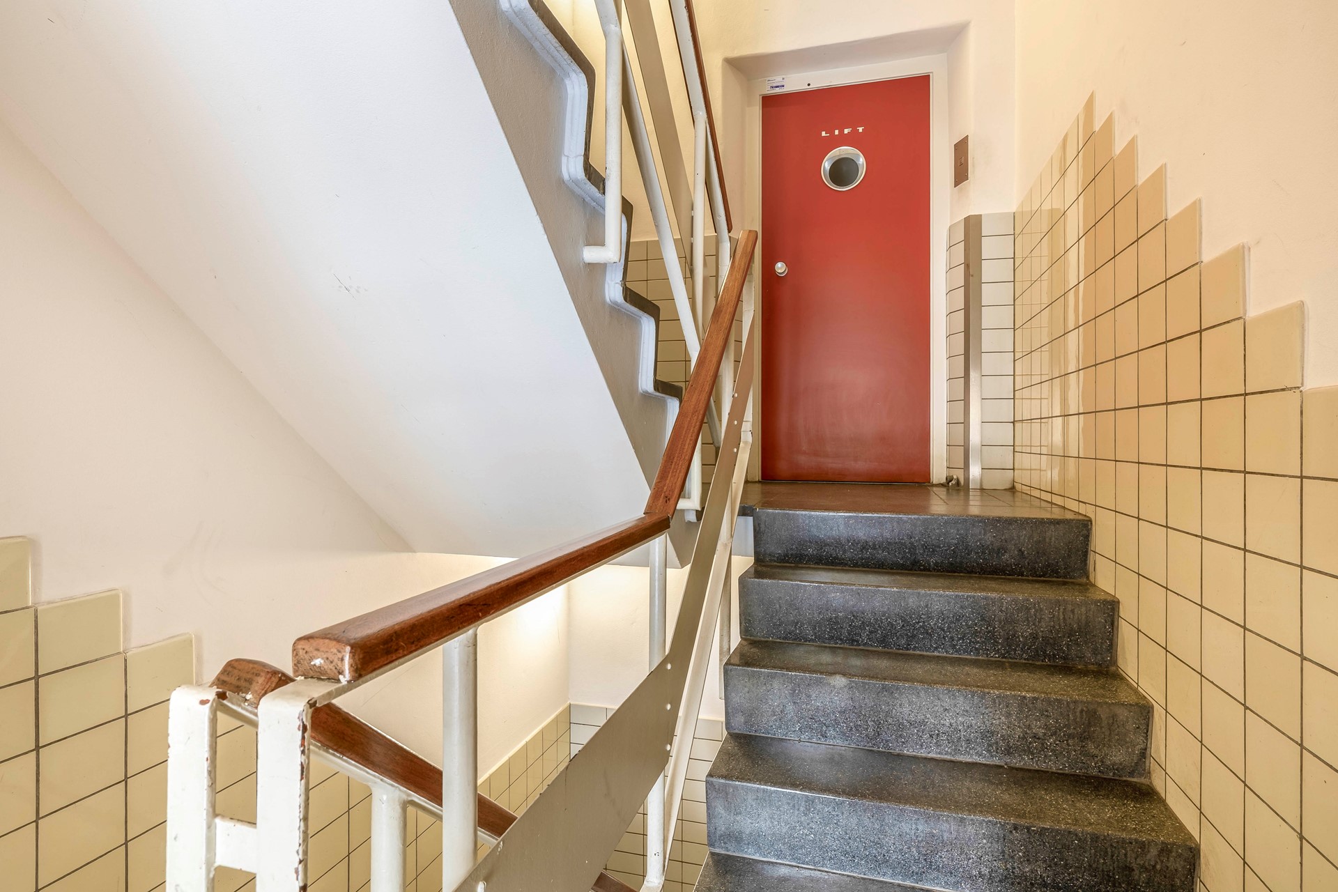 Trap tot afgesloten portiek met intercom en brievenbussen is er toegang tot het trappenhuis en de lift. Er is toegang tot de verdiepingen en de bergingen in de onderbouw.