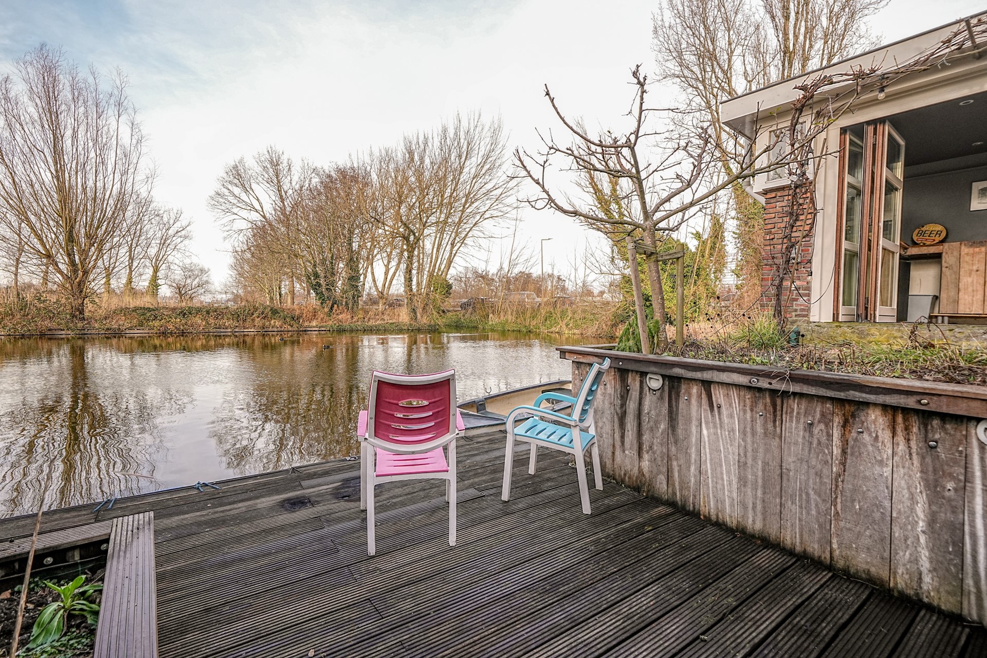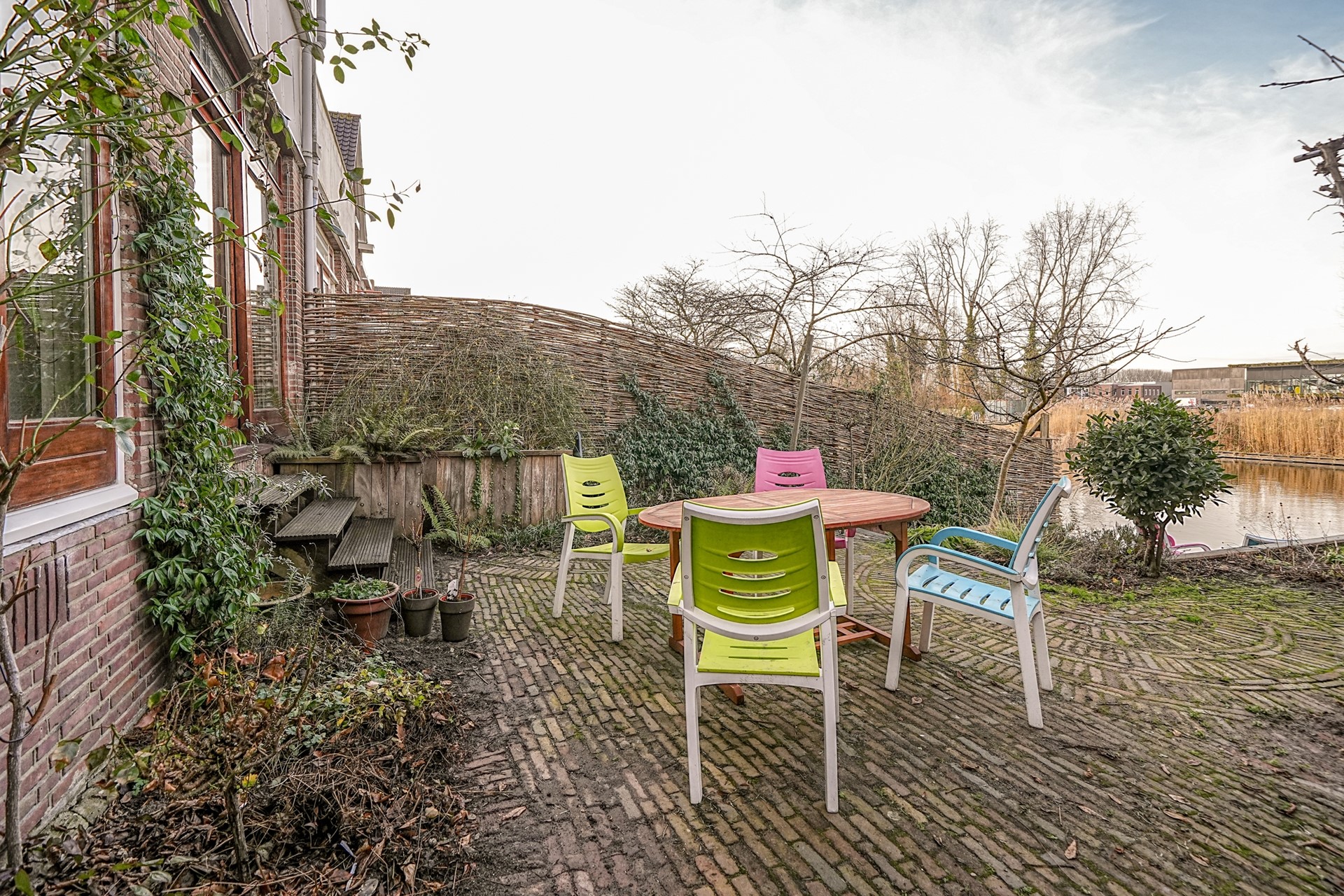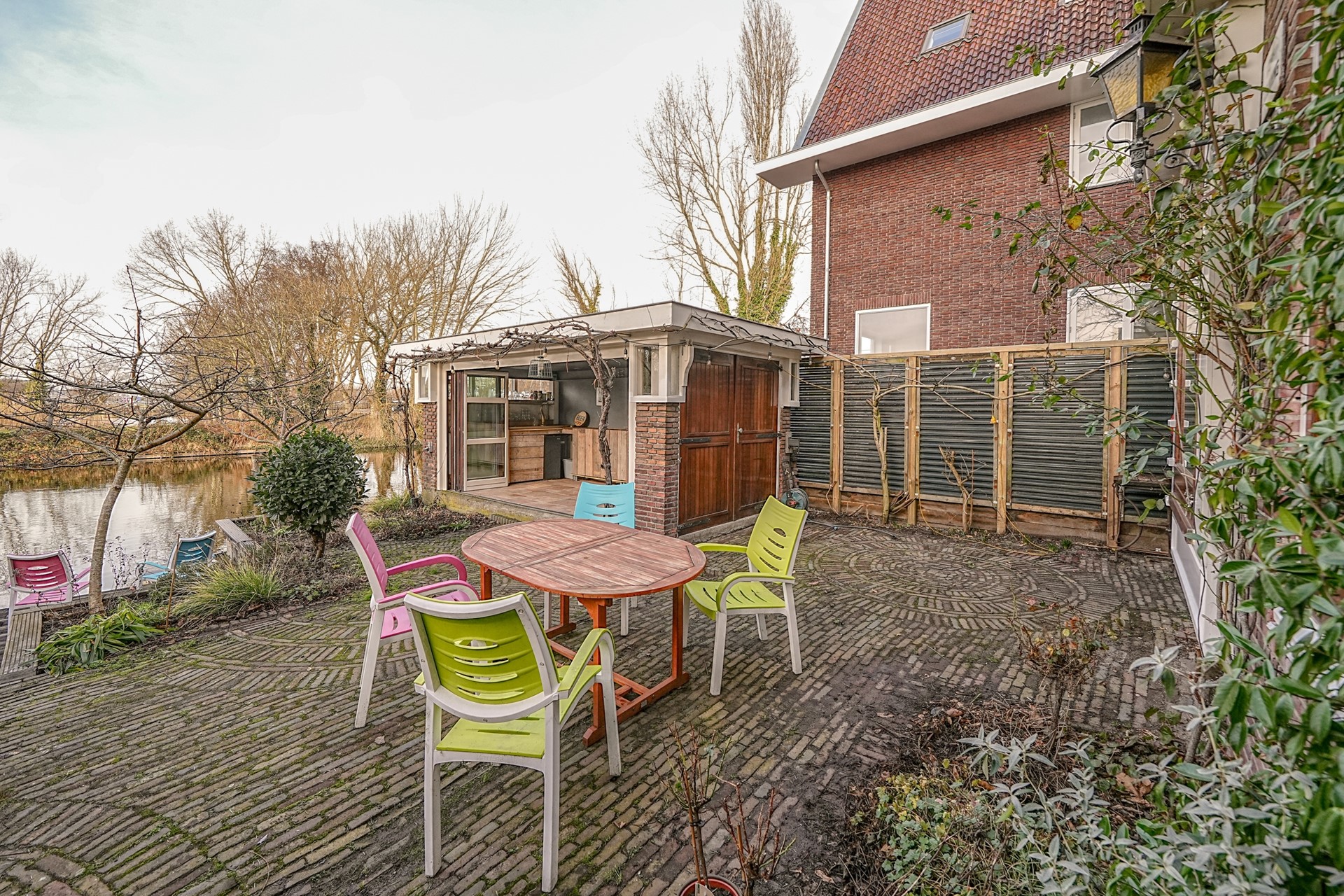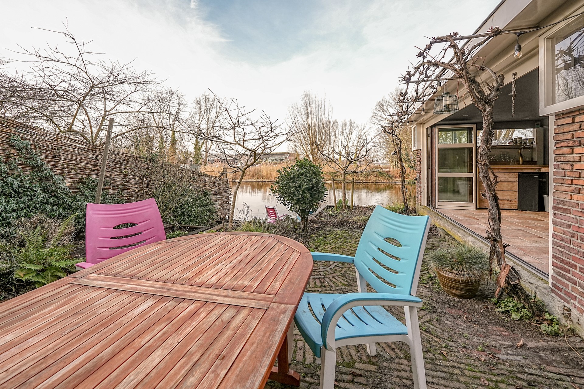 De achtertuin is een heerlijke plek: ruim, groen en direct gelegen aan het water. Er zijn meerdere zitplekken om optimaal van het buitenleven te genieten. Door