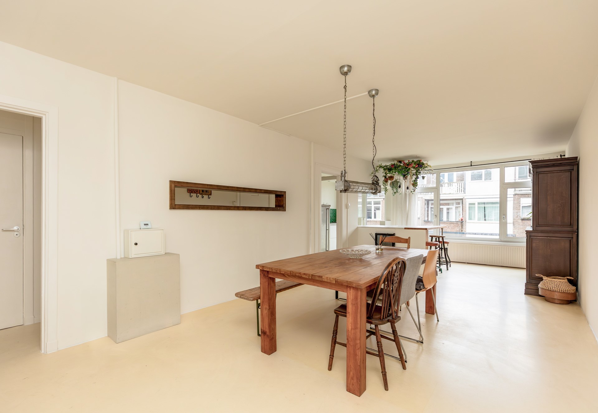 De woonkamer bevindt zich aan de voorzijde en loopt over in de open keuken aan de achterzijde. Door de fijne diepte van de ruimte is er volop plek voor een grote eettafel, dé perfecte setting voor lange diners met vrienden en gezellige avonden met familie.