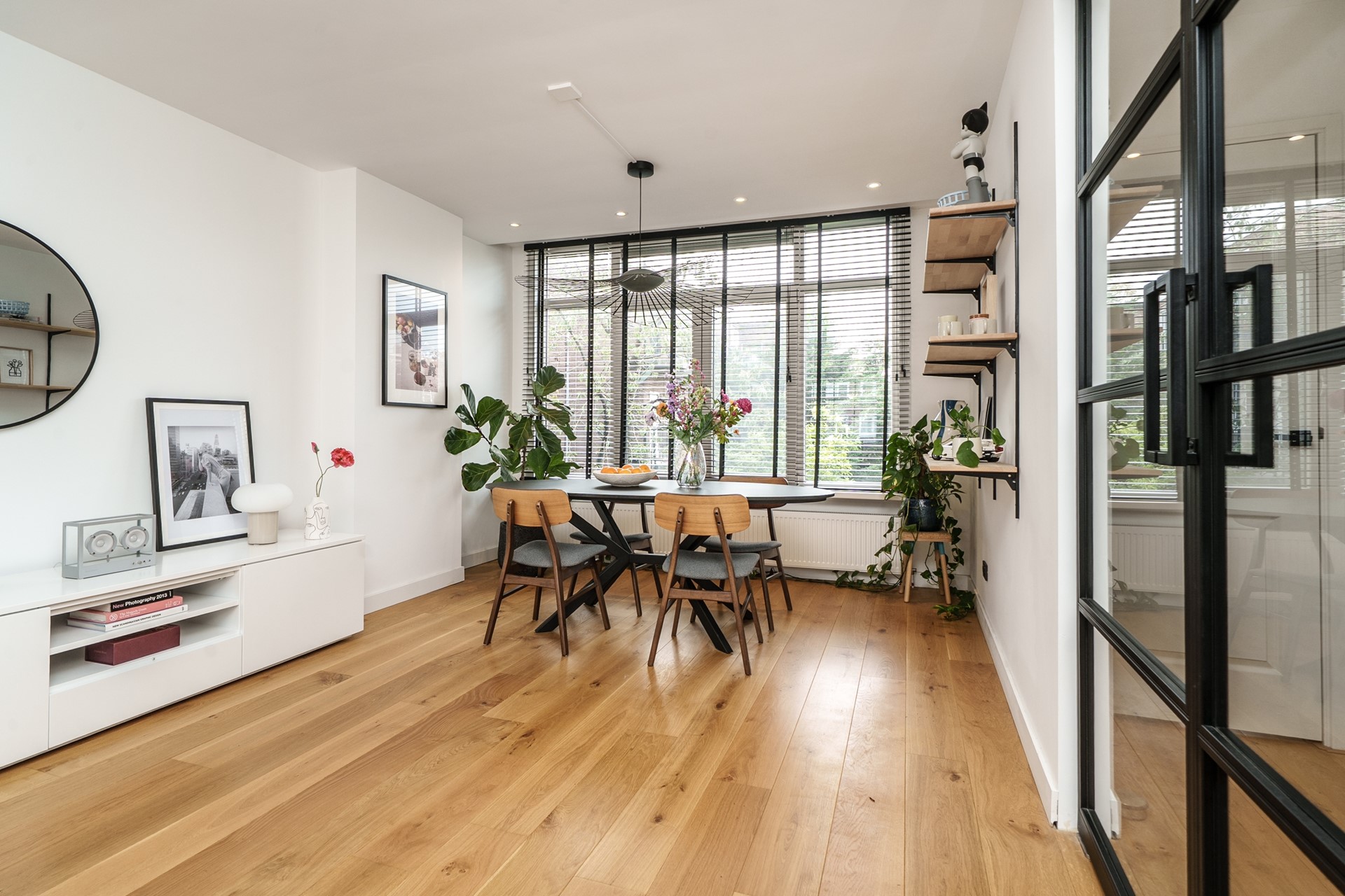 De woonkamer is heerlijk licht dankzij de grote raampartijen en voelt bijzonder ruim aan. Aan de voorzijde bevindt zich het zitgedeelte, terwijl aan de achterzijde ruimte is voor een royale eettafel. Centraal in de ruimte ligt de luxe open keuken, die een echte eyecatcher vormt.