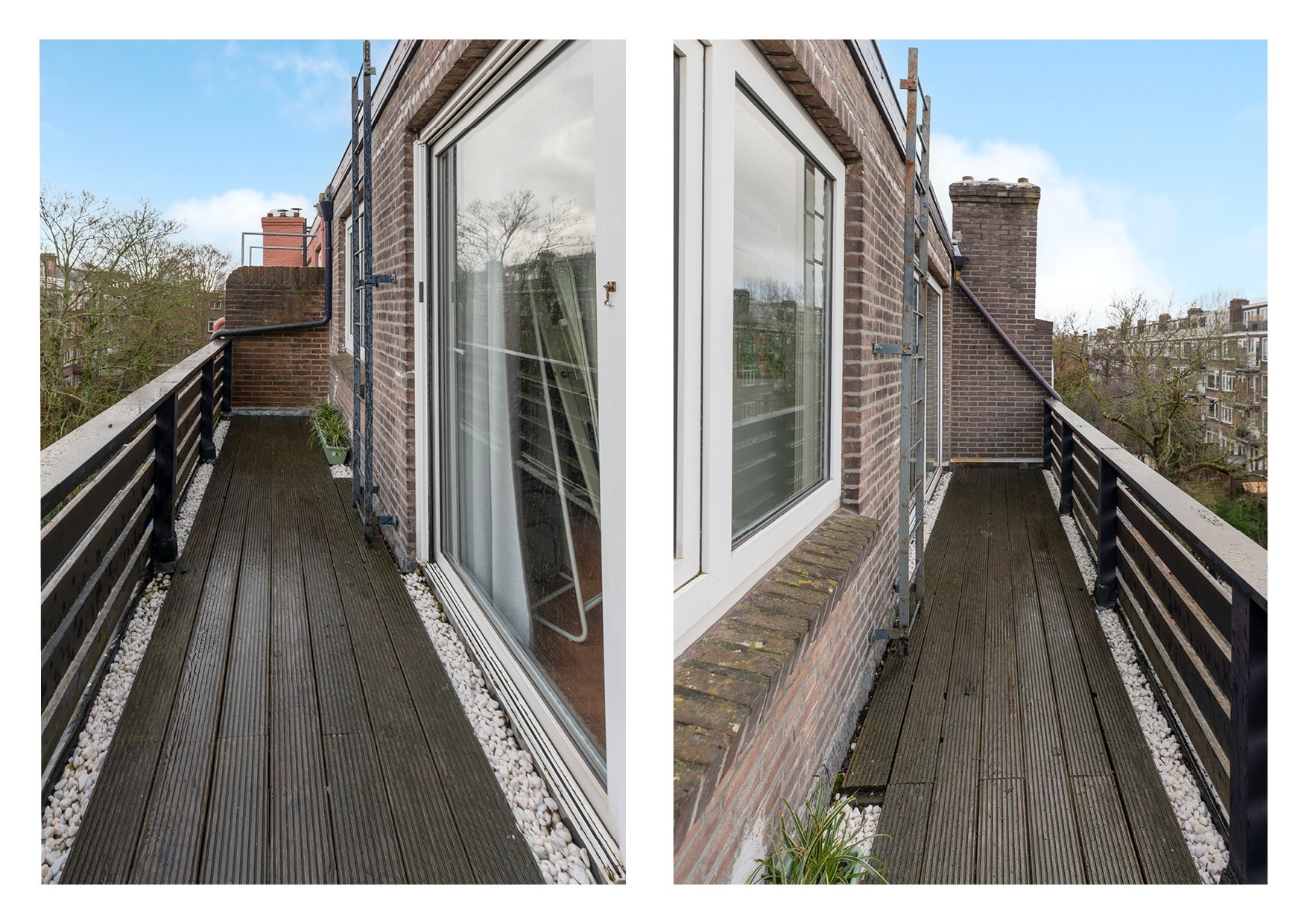 Via een vaste trapladder vanaf het tweede balkon bereikt u het dak. Een prachtige kans om een extra, zonnige buitenruimte te creëren. De VvE heeft hier geen bezwaar tegen!