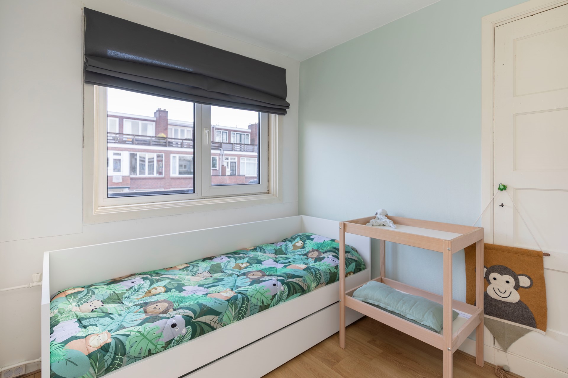 De tweede slaapkamer is eveneens netjes afgewerkt en ideaal als kinder-, werk- of logeerkamer.