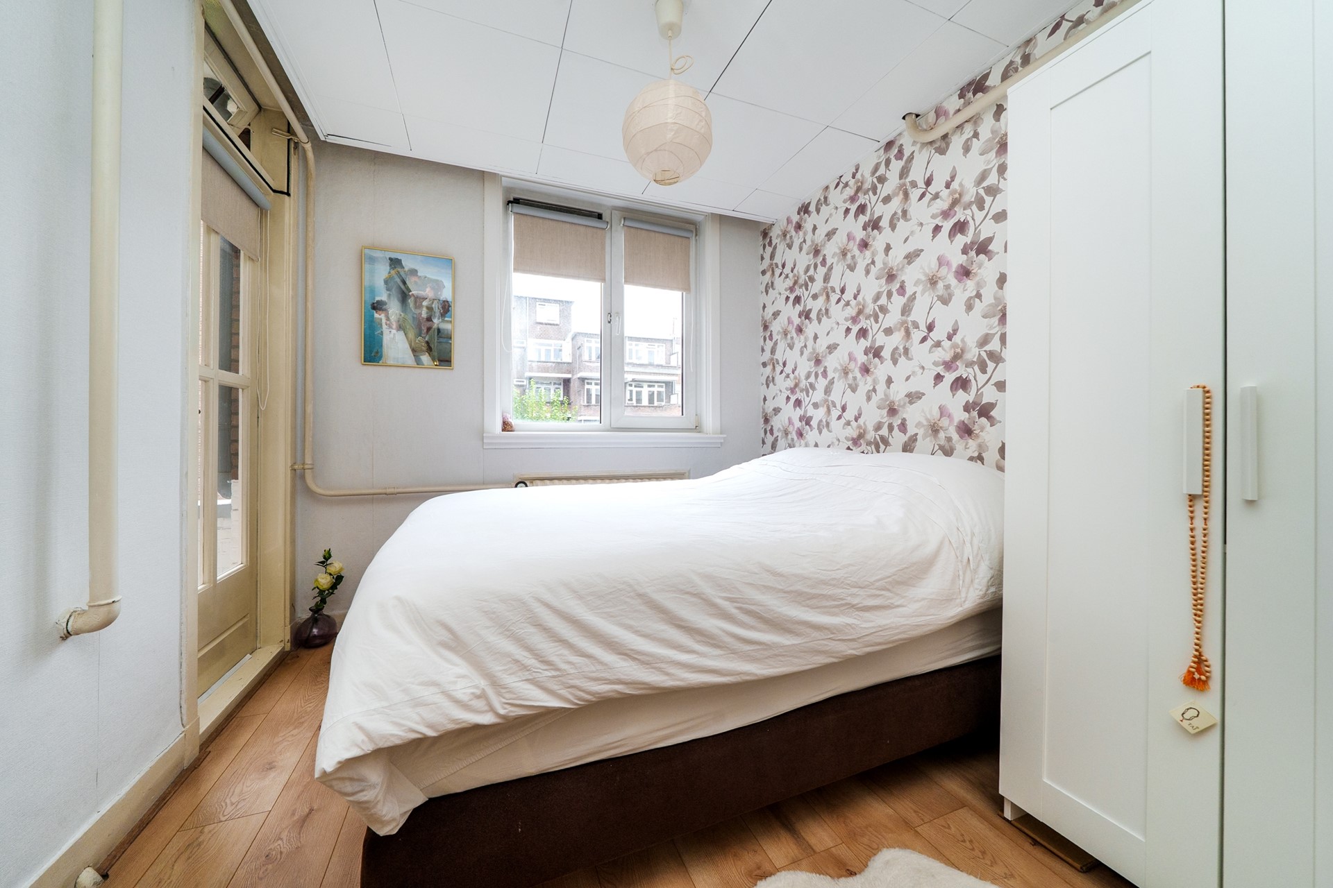 De ruime slaapkamer is aan de achterzijde gelegen en biedt eveneens toegang tot het balkon. Er is voldoende plek voor een groot tweepersoonsbed en een kledingkast, waardoor het een comfortabele en rustige plek is om de dag af te sluiten.