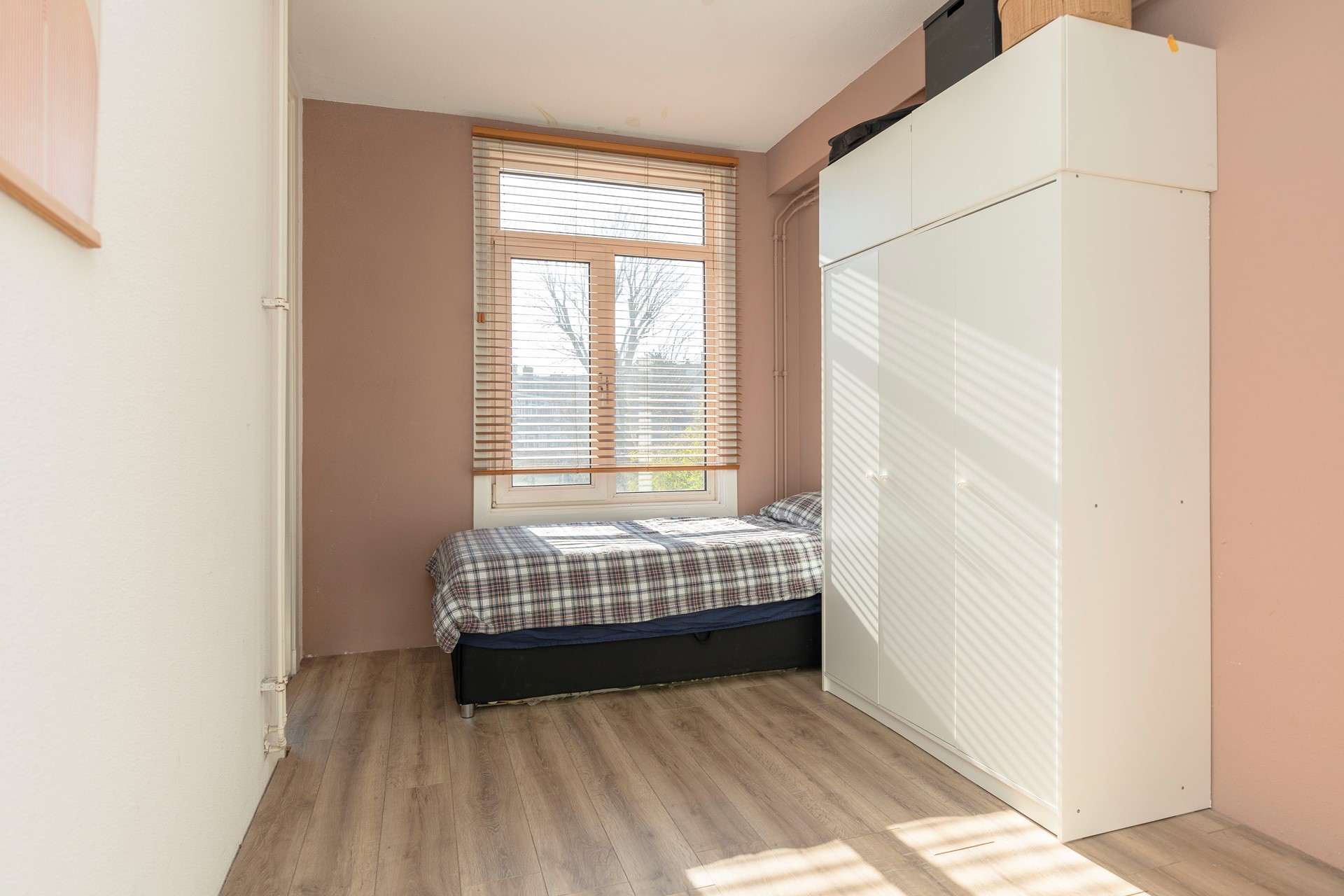Ook de tweede slaapkamer ligt aan de achterzijde en heeft eveneens toegang tot het balkon. Deze kamer is ideaal als werk-, studie- of logeerkamer.