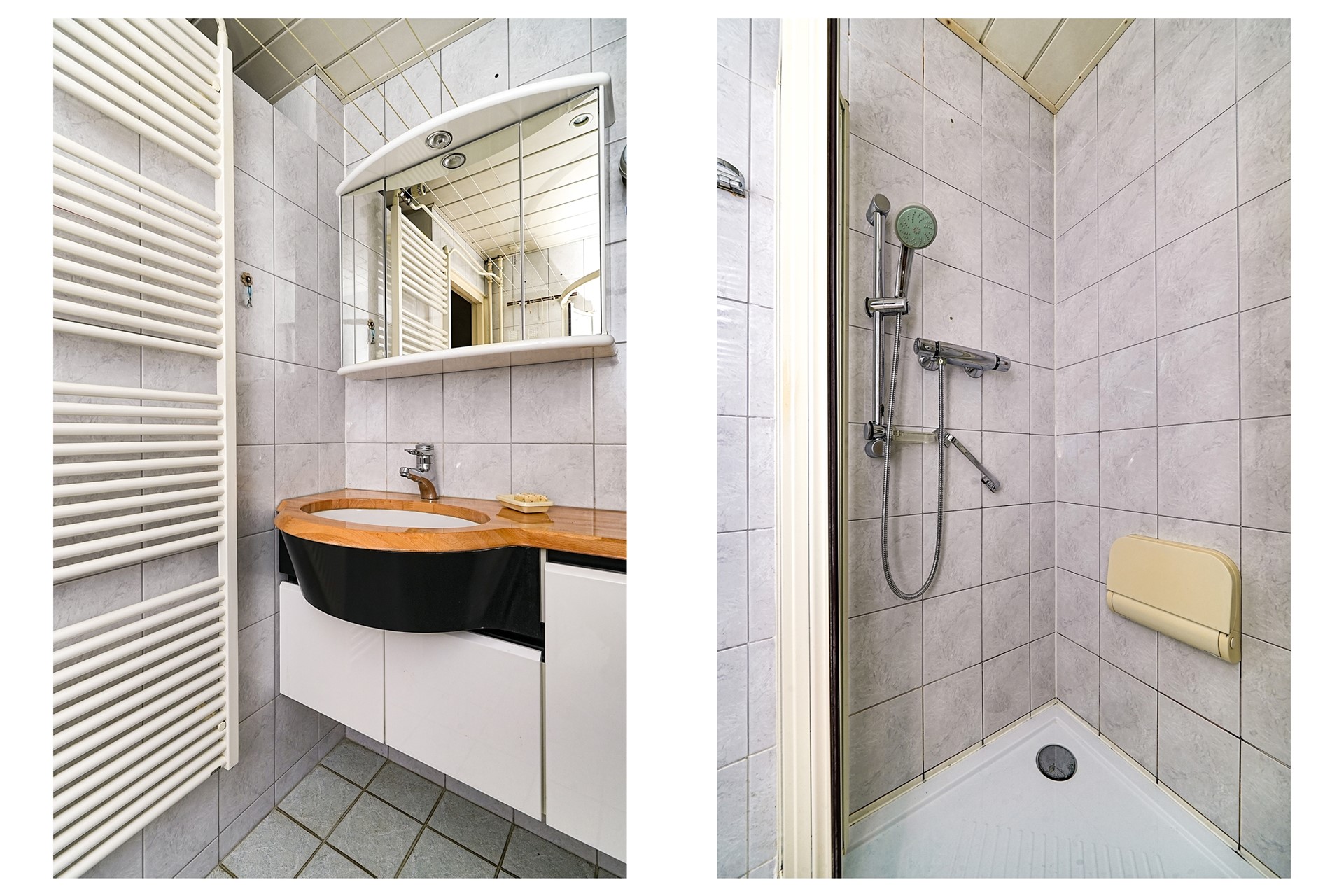 De badkamer is praktisch ingericht met een douchehoek en wastafelmeubel en het toilet is separaat.