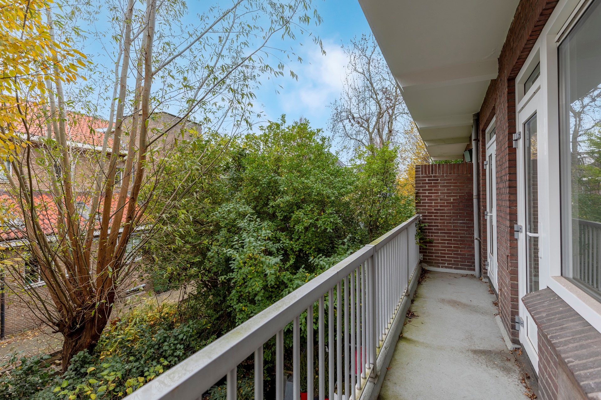 Via het afgesloten portiek bereik je de eigen voordeur.